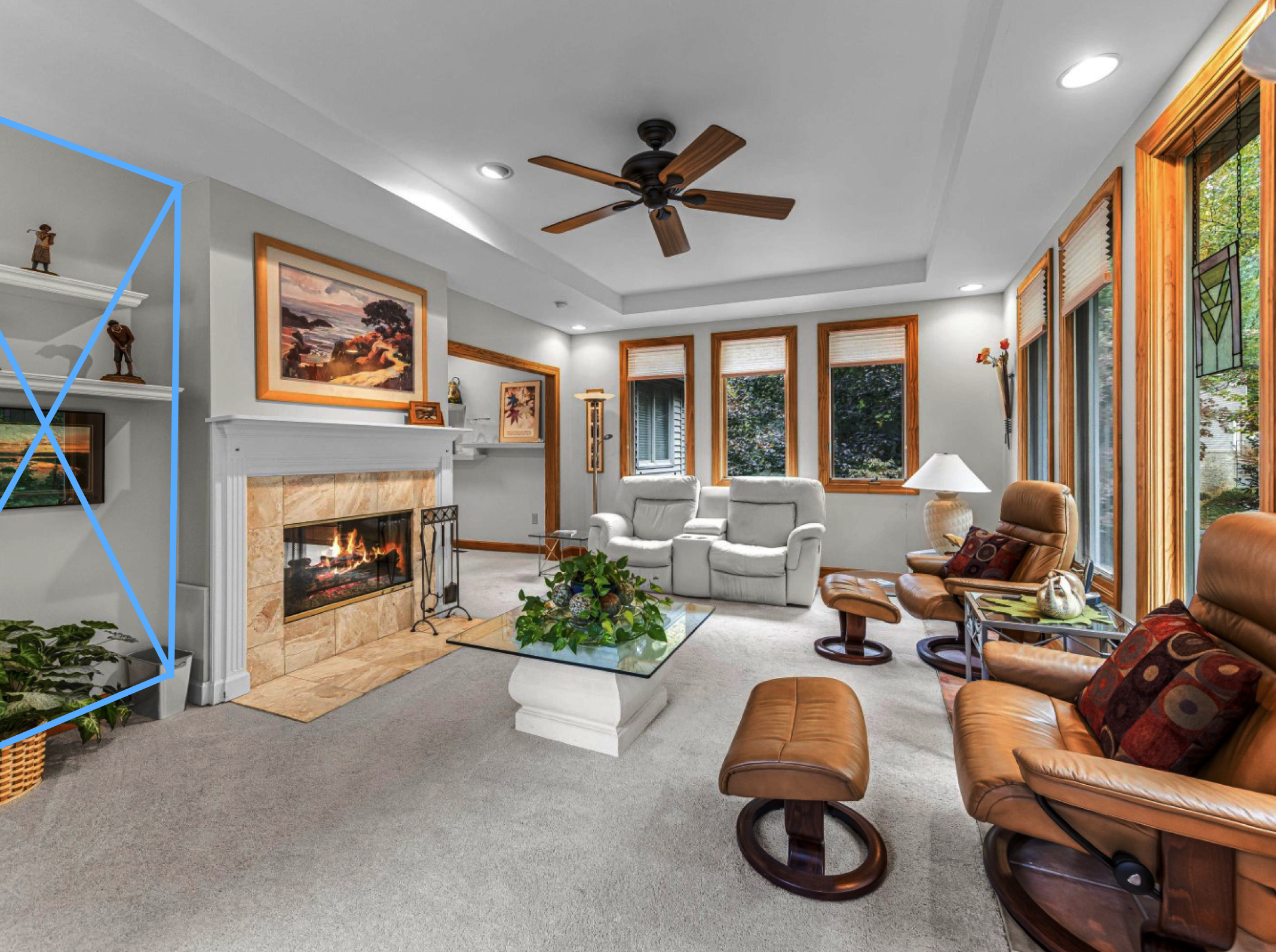 This stunning renovation created a seamless flow between the dining room, living room, and sunroom. Dr. Barnes' family now enjoys a bright, airy space perfect for daily living and entertaining guests. The open-concept design allows family members to connect across rooms while maintaining functional living zones.