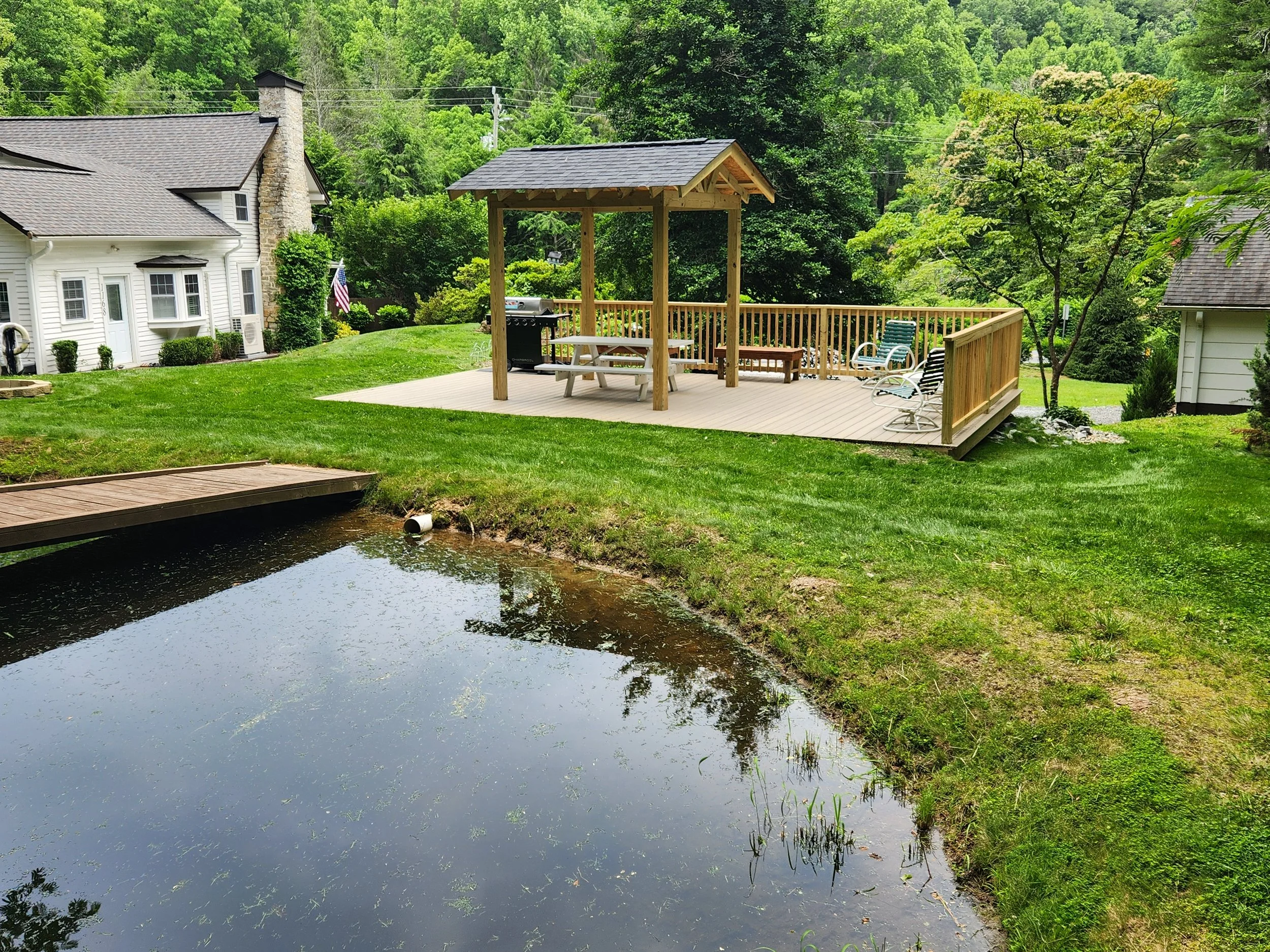 After rainfall from Hurricane Helene overwhelmed a family's backyard pond dam, their deck, which had once been a peaceful outdoor retreat, became an unsafe structure.
